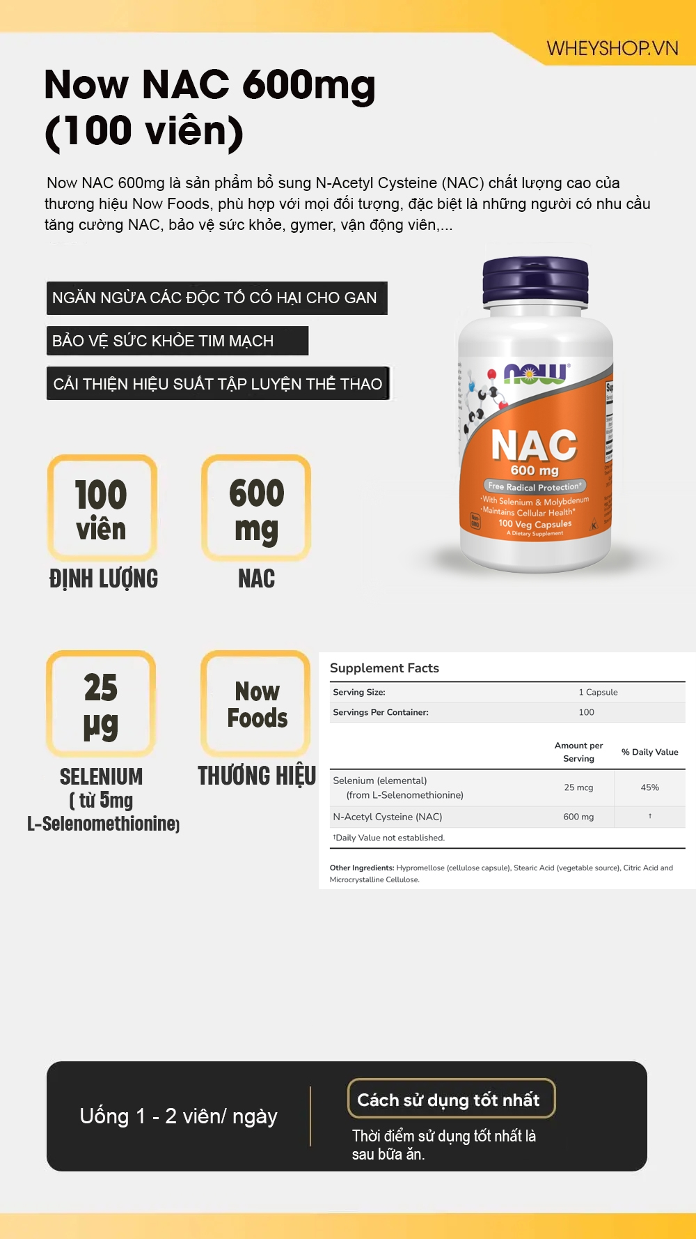 | Thành phần chính | Now NAC 600mg (100 viên) |